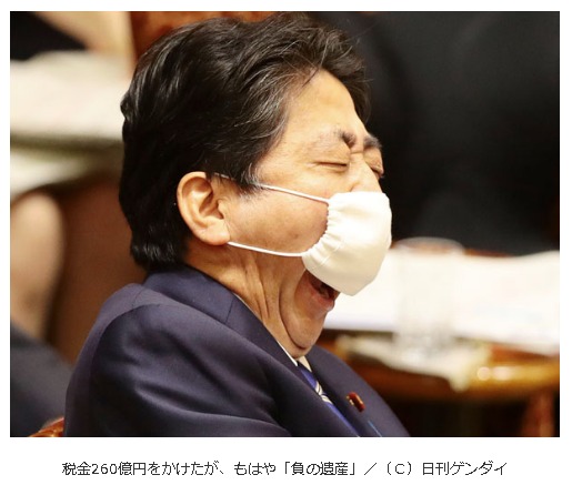 【写真】安倍首相(当時)アベノマスクで大あくびの決定的瞬間!